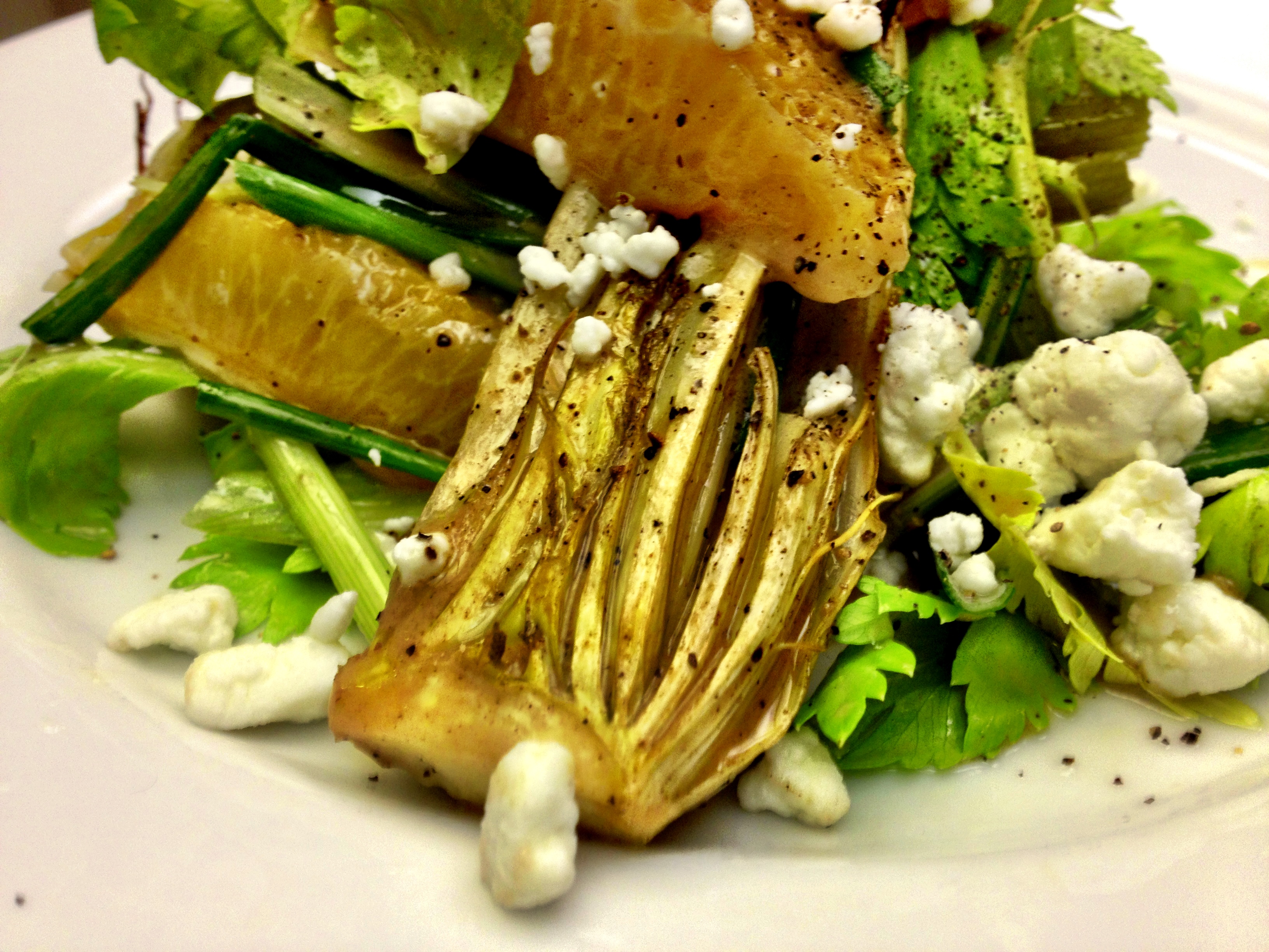 I had in mind a salad built around these roasted celery roots. Something citrus filled, with a creamy, crumbly cheese to balance out the flavors.